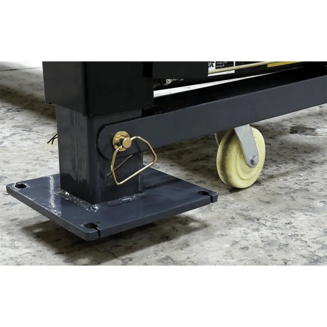 - Comes standard with caster kit, drip trays, mobile jack tray, aluminum approach ramps, and hardened steel tire stops.