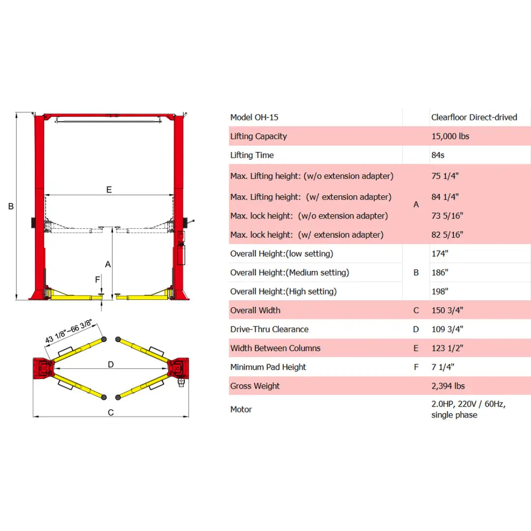 Certified by CE and surpassing the stringent standards set by European Standard EN-1493, the AMGO OH-15 2 Post Car Lift is not just a lifting device but a robust solution for automotive professionals seeking to enhance their service offerings. Available through Mechanic Superstore, the OH-15 is ready to take your vehicle servicing capabilities to the next level, combining unparalleled lifting capacity with advanced safety features and user-friendly design.