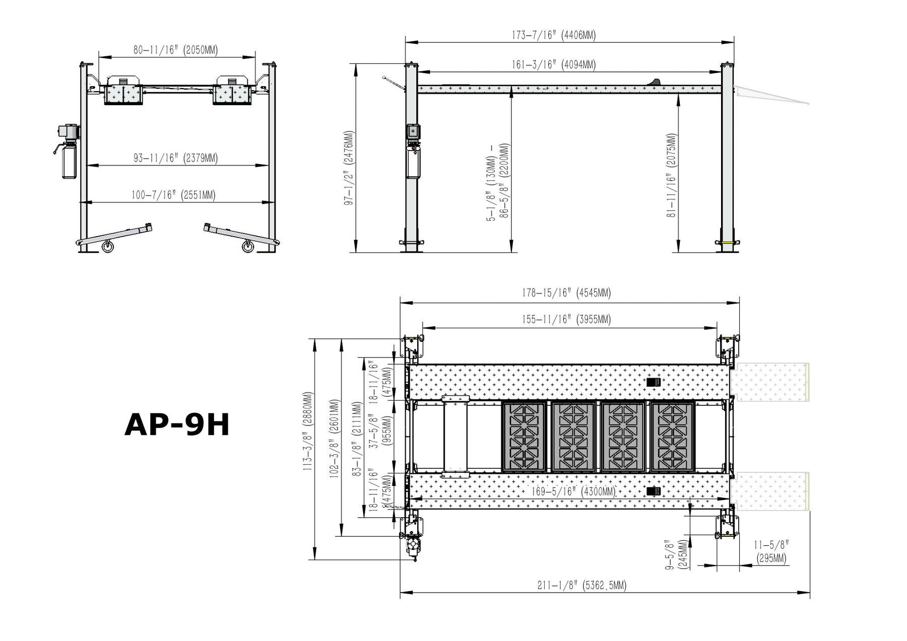 • AP-9H Model Overall Dimensions: 174"L x 114"W x 98"H