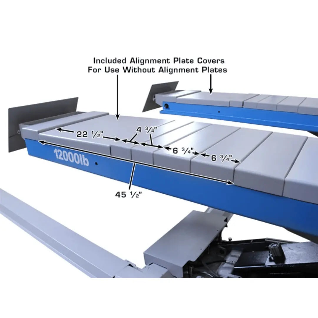 The Atlas® 12AWFSL is a full-rise alignment scissor lift designed for surface or flush mount installation. This commercial grade lift is built for the busiest service centers and is made to last. With over 7’ of lifting height, it allows easy access to the underside of the vehicle. The 12AWFSL features built-in slip plates and comes with a set of turntables and covers. Its open-center design with full frame undercarriage provides structural strength while allowing for undercar service access.
